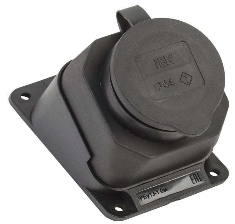 Характеристики Розетка 1-м Омега РБу13-1-0м IP44 угловая настен. с заземл. с защ. крышкой каучук черн. IEK PKR22-016-2-K02: