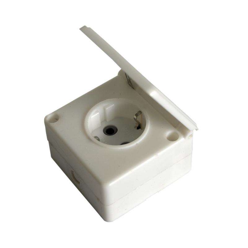 Розетка 1-м ОП с заземл. IP44 бел. БЕЛТИЗ РА 16-005 представляет собой электроустановочный механизм одноместной розетки. Корпус в виде квадратной формы из пластика, со стороной, равной 75 мм, ударопрочный, влагозащищенный (IP44), поверхность глянцевая, блестящая, белого цвета. Монтируется на глубину 48,5 мм, на поверхность стены.