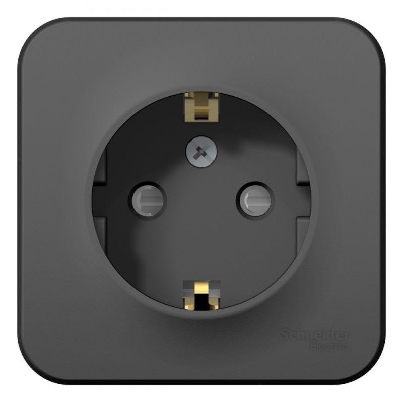 Розетка BLANCA (антрацит, открытой установки) одноместная с заземлением, шторками и изолирующей пластиной предназначена для сетей до 250В, на ток до 16А. Шторки открываются только при одновременном равномерном давлении в оба отверстия и препятствуют проникновению посторонних предметов. Они обеспечат дополнительную безопасность в доме, где есть дети.