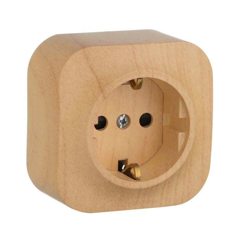 Розетка с заземлением и защитными шторками Legrand Quteo для открытого монтажа, цвет дерево. Максимальный ток 16 А, максимальная мощность 3680 Вт. Применяется в зданиях, оборудованных для повышения безопасности проводкой с заземлением (с защитным проводником). Рекомендуются к применению в квартирах и помещениях в которых могут быть дети. Шторки осуществляют защитную функцию путём ограничения доступа к токоведущим контактам. Доступ открывается только при подключении вилки. Особенности: — Матовая. Имитация под светлое дерево. — Все токоведущие части розетки имеют защиту от случайного прикосновения. — Контактная группа изготовлена из латуни CuZn37, имеет высокую степень упругости и сохраняет плотный контакт с вилкой, при длительной эксплуатации. — Скоба заземления имеет особый профиль для большей прочности. — Зажимы для присоединения проводников винтовые, с невыпадающими винтами. Исключают потерю винтов при монтаже. — Внешний корпус крепится к механизму винтом. Особенности серии Quteo: — Современный формат накладного монтажа — Механизм изготовлены из высококачественного поликарбоната, не проводит электрический ток, не поддерживает горение. — Простое выравнивания изделий при установке в ряд,благодаря специальной форме основания. — Корпус ударопрочный из пластичного полипропилена стойкого к внешним воздействиям. — Перфорация на корпусе для безошибочного вырезания отверстий при монтаже открытой проводки — В основании преднарезаны 4 отверстия для подвода кабеля при монтаже скрытой проводки
