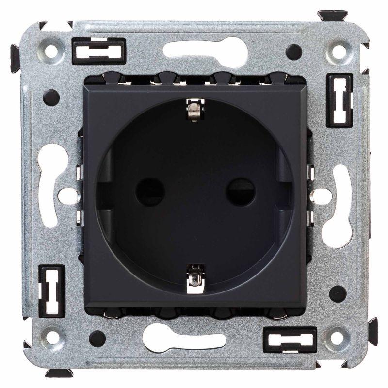 Розетка 2P+E (однофазная розетка с заземлением) от ДКС применяется для подключения различных электроприборов. Изделие предназначено для скрытого монтажа в стену и рассчитано на номинальное напряжение 230 В и номинальный ток 16 А. Лаконичные формы электроустановочных изделий «Avanti» отлично сочетаются с глубокими цветами. Пластиковые части устройства имеют оттенок «Черный матовый». Это темный насыщеный цвет, который легко сочетается с любыми оттенками, придавая им оттенок богемной утонченности.