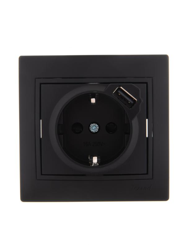 Характеристики Розетка 1-м СП Mira 16А с заземл. + USB разъем черн. бархат LEZARD 701-4242-181: