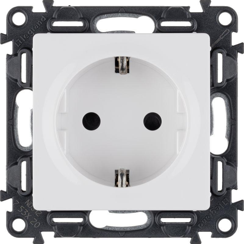 Механизм розетки Valena Life 16А 250В 2К+З защ. шторки безвинт. зажимы с лицевой панелью бел. Leg 753420 – электроустановочный механизм. Представляет собой розетку из пластика, с лицевой панелью белого цвета, скрытой установки, монтируемый под штукатурку, на глубине не менее 40 мм. Предусмотрены защитные шторки, автоматически закрывающие гнезда розетки при вынутой вилке.