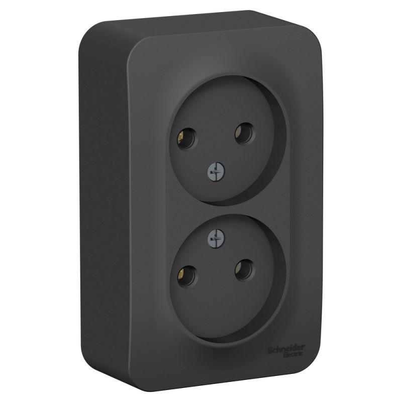 Розетка BLANCA (антрацит, открытой установки) двухместная, без шторок и заземления, с изолирующей пластиной предназначена для сетей до 250В, на ток до 16А. Двухместная розетка позволяет подключить два устройства в одном месте. Она изготовлена из ABS-пластика, проста в установке и удобна в применении.