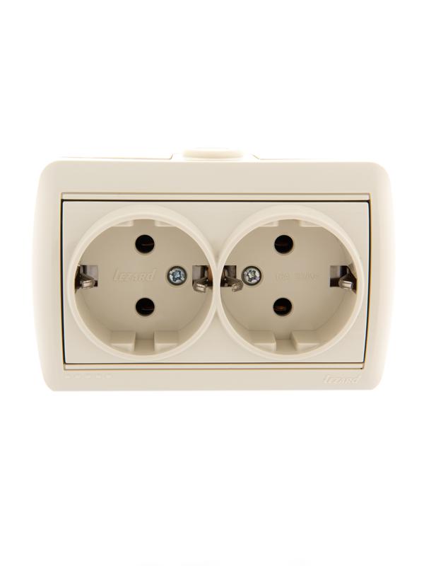Характеристики Розетка 2-м ОП Nata 16А IP20 с заземл. керамика крем. LEZARD 710-0300-127: