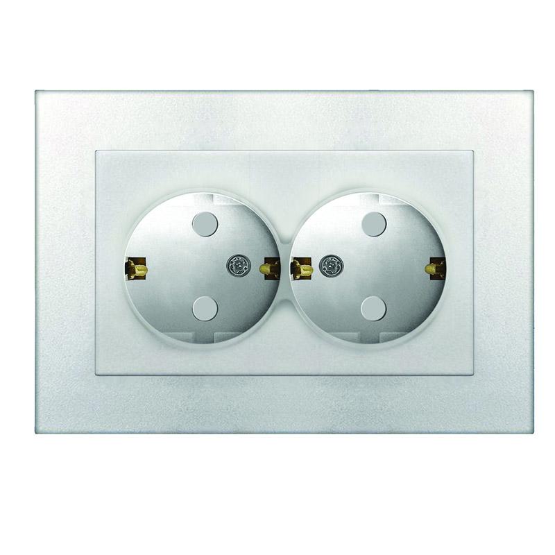 Характеристики Розетка 2-м СП Афина 16А IP20 с заземл. защ. шторки в сборе серебр. Universal A0050-S: