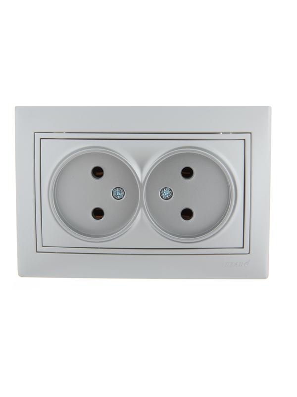 Характеристики Розетка 2-м СП Mira 16А IP20 без заземл. со вставкой керамика сер. метал. LEZARD 701-1010-128:
