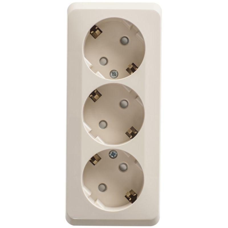 Розетка ЭТЮД (кремовый, открытой установки) трёхместная с заземлением и шторками предназначена для применения в сетях до 250В, на ток до 16А. Трёхместная розетка позволяет подключить три устройства в одном месте. Шторки и заземление обеспечивают дополнительную безопасность при косвенных прикосновениях. Сделано в России.