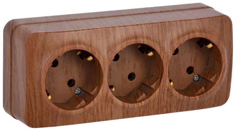 Характеристики Розетка 3-м ОП GLORY РС23-3-ХД 16А с заземл. дуб IEK ERH31-K24-16: