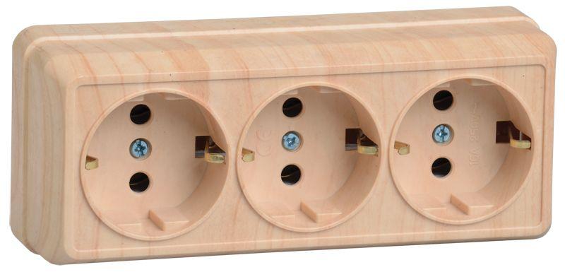 Характеристики Розетка 3-м ОП Октава РС23-3-ОС 16А IP20 с заземл. сосна IEK ERO31-K03-16-DC: