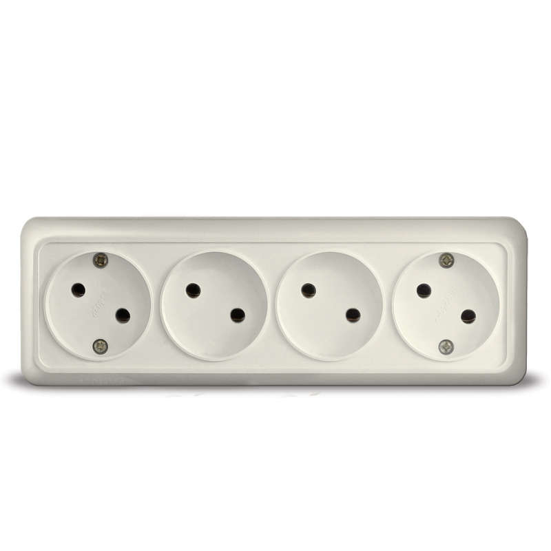 Характеристики Розетка 4-м ОП Олимп 16А IP20 без заземл. сл. кость UNIVersal 1168: