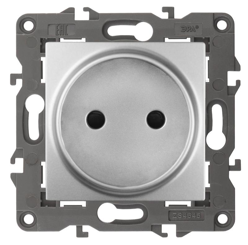 Розетка ЭРА серии Elegance 14-2105-03 без заземления скрытой установки цвет алюминий, номинальные характеристики: 16A-250В, IP20. Выполнена из качественного поликарбоната, латуни и сплава серебра. оснащена безвинтовым типом клемм.