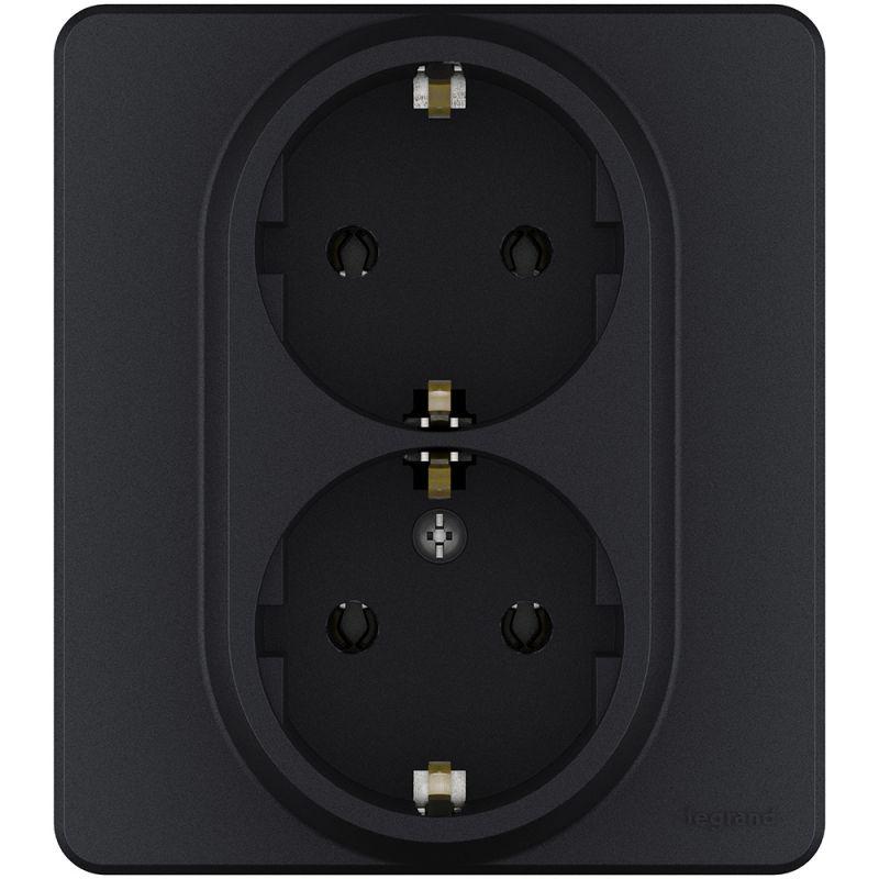 Розетка двойная с заземлением Legrand Inspiria для скрытого монтажа , цвет «Антрацит». Максимальный ток 16 А, напряжение ~250В, максимальная мощность 3680 Вт. Применяется для электропитания в зданиях с проводкой с заземлением (с защитным проводником). Позволяет компактно разместить две розетки в одном установочном месте. Особенности изделия: — Контактная группа изготовлена из высококачественной латуни CuZn37, имеет высокую степень упругости и сохраняет плотный контакт с вилкой, при — длительной эксплуатации. — Зажимы для присоединения проводников винтовые П-образной формы для исключения бокового выдавливания провода. — В зажимах установлены качественные винты с никель-цинковым напылением для надежного резьбового соединения даже при чрезмерных моментах затяжки. — Защитный контакт с широким основанием и специальным профилем для упругости при подключении/отключении и плотного контакта с вилкой. — Лицевая панель крепится на винтах. Изготовлена из прочного глянцевого поликарбоната, стойкого к механическим воздействиям, выгоранию и загрязнениям. — Компактный корпус «моноблок» с интегрированной рамкой предназначен для 1 установочного места. Без возможности многопостового монтажа.