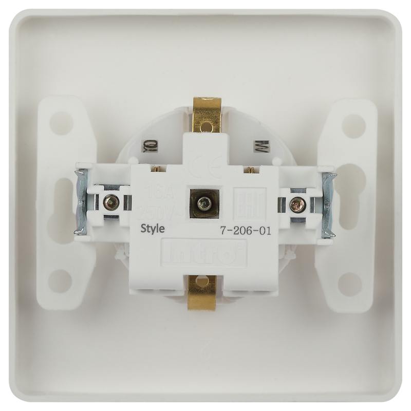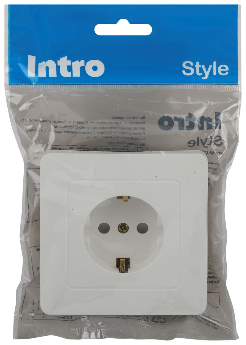 Характеристики Розетка Intro 7-206-01 Style с заземлением 2P+E Schuko со шторками, 16А-250В, IP20, СУ, белый: