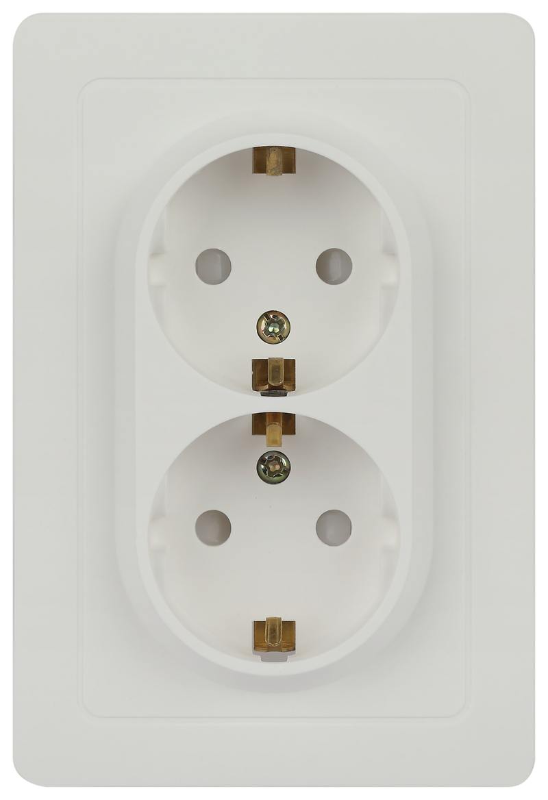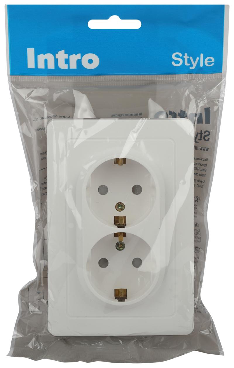 Характеристики Розетка Intro 7-208-01 Style двойная с заземлением 2X2P+E Schuko со шторками, 16А-250В, IP20, СУ, белый: