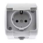 Характеристики Розетка Intro Atlantic 5-201-03 с заземлением 2P+E Schuko, 16А-250В, IP54, открытой установки, серый: