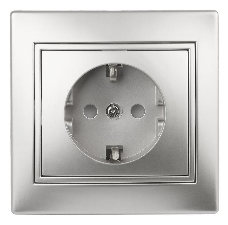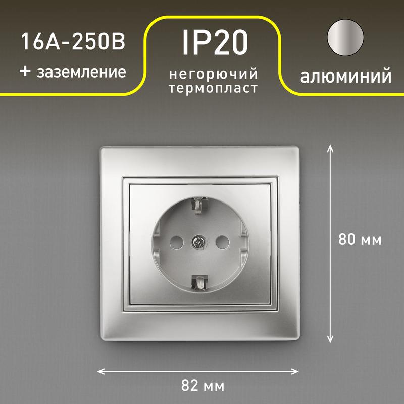 Характеристики Розетка Intro Plano 1-202-03 с заземлением 2P+E Schuko, 16А-250В, IP20, СУ, алюминий: