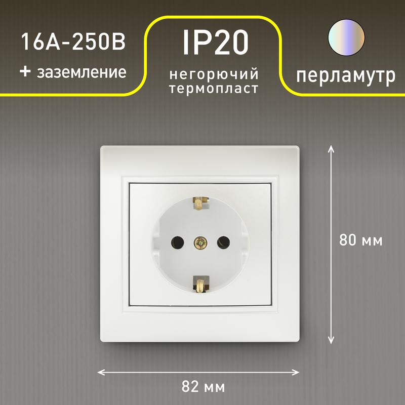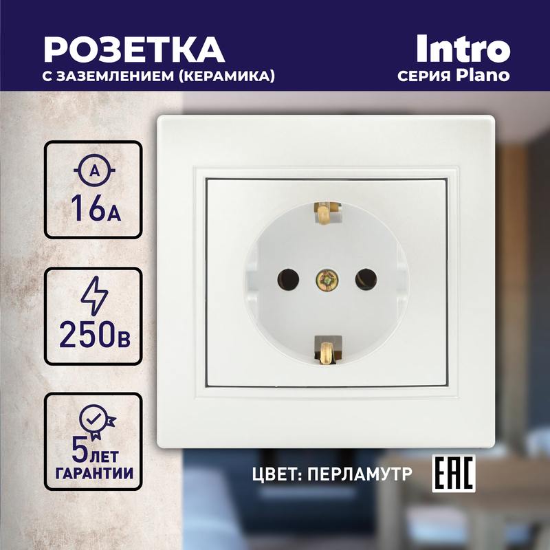 Характеристики Розетка Intro Plano 1-202-06 с заземлением 2P+E Schuko, 16А-250В, IP20, СУ, перламутр:
