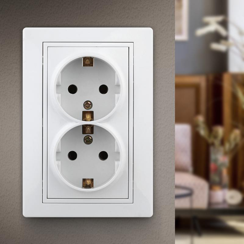 Характеристики Розетка Intro Plano 1Э-208-01 с заземлением двойная 2X2P+E Schuko со шторками, 16А-250В, IP20, СУ, б.л., белый: