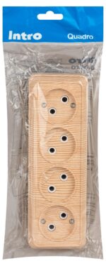 Розетка четырехместная серии Intro Quadro открытой установки цвет сосна 2-207-11. Номинальные характеристики 16А 250В. Розетка выполнена из пластика (термопласт), оснащёна винтовыми зажимами.