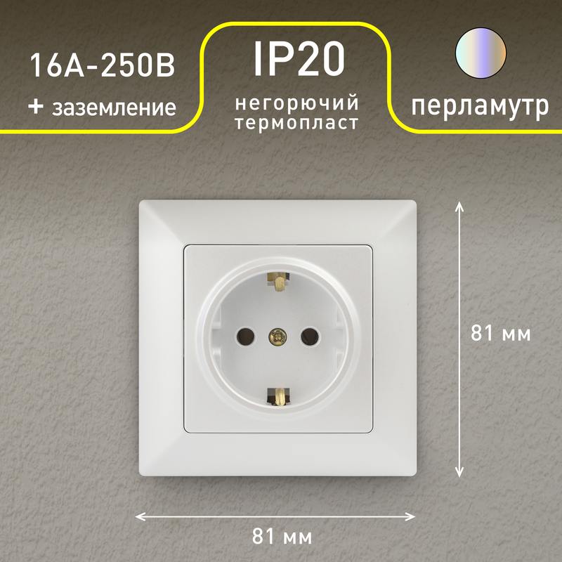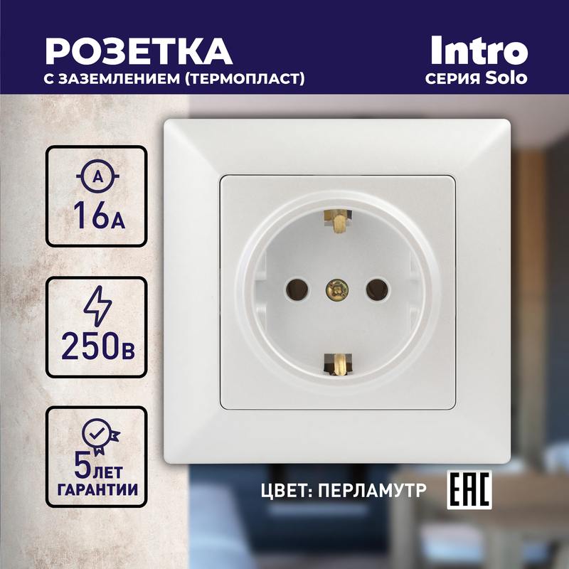 Характеристики Розетка Intro Solo 4-202-06 с заземлением 2P+E Schuko, 16А-250В, IP20, СУ, перламутр:
