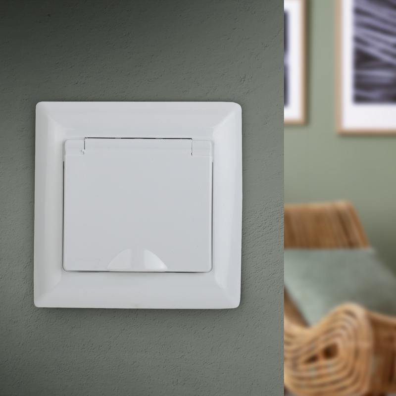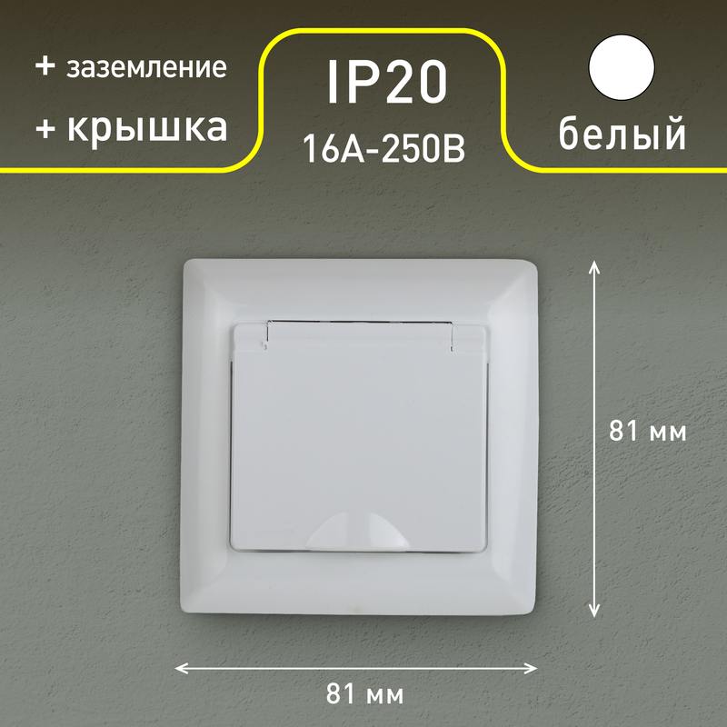 Характеристики Розетка Intro Solo 4-203-01 с заземлением 2P+E Schuko с крышкой, 16А-250В, IP20, СУ, белый: