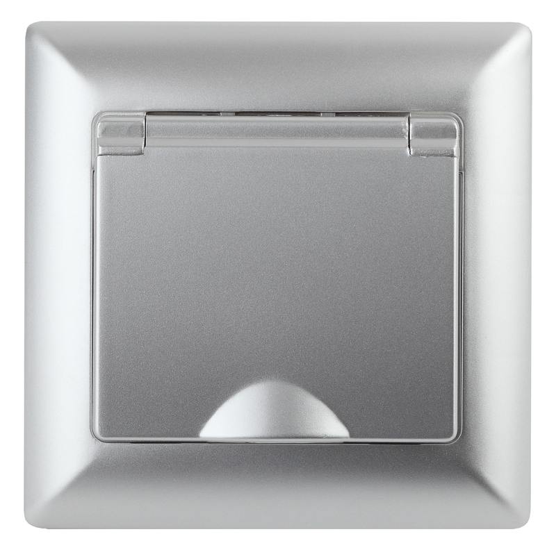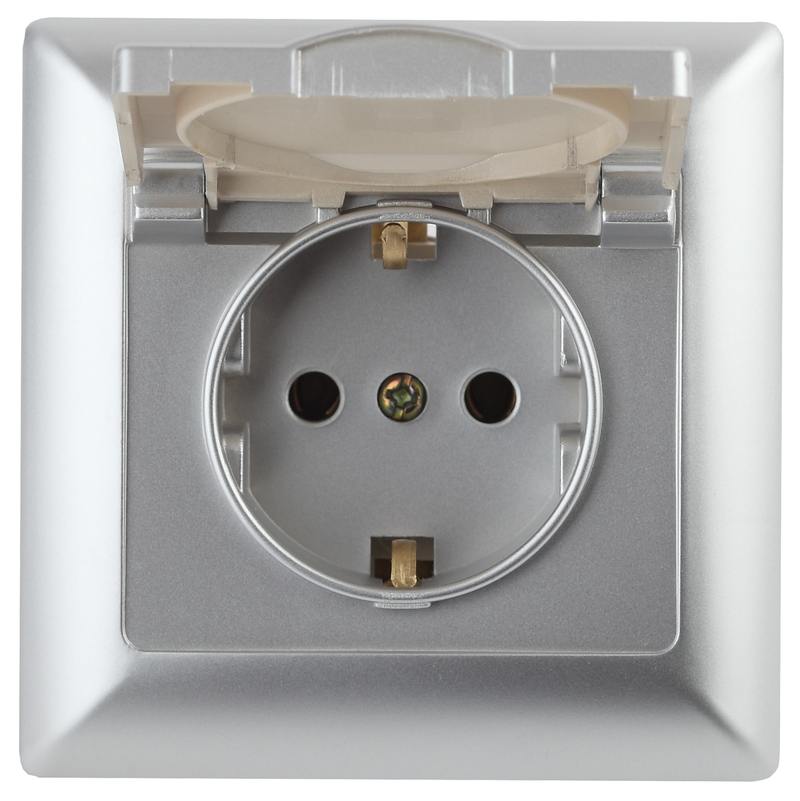 Характеристики Розетка Intro Solo 4-203-03 с заземлением 2P+E Schuko с крышкой, 16А-250В, IP20, СУ, алюминий: