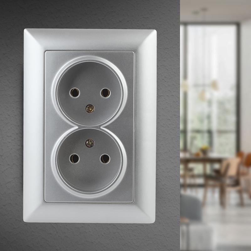Розетка двойная 2-я серии Intro Solo скрытой установки цвет алюминий 4-204-03. Номинальные характеристики 16А 250В. Розетка выполнена из негорючего термопласта, укомплектована одноместной рамкой, оснащена винтовыми клеммами. Клеммы с двумя отверстиями позволяют соединять соседние розетки шлейфом. Установка в подрозетник производится как на монтажные лапки, так и на винты.
