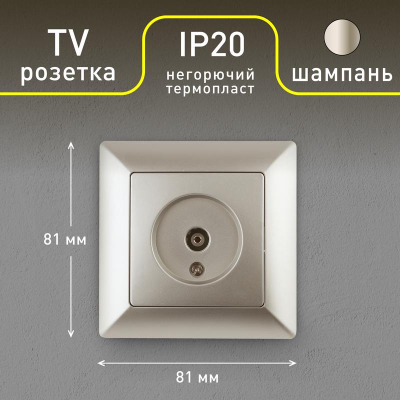Характеристики Розетка Intro Solo 4-301-04 TV одиночная, СУ, шампань: