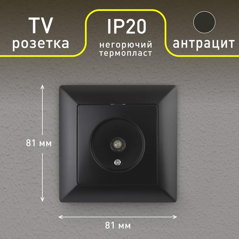 Характеристики Розетка Intro Solo 4-301-05 TV одиночная, СУ, антрацит: