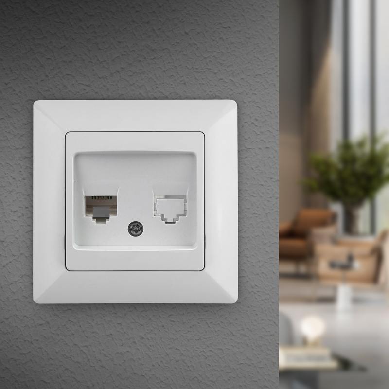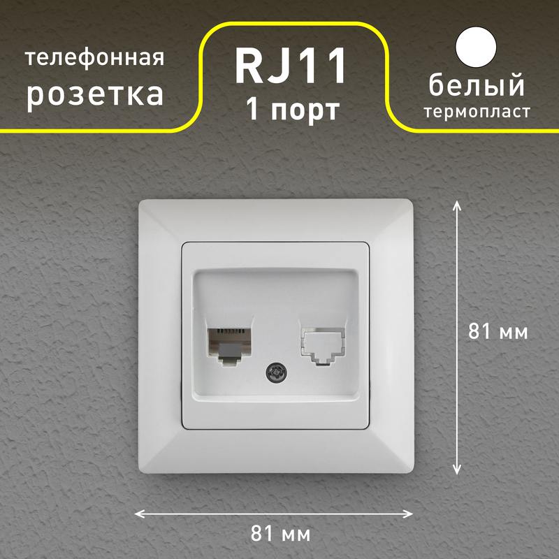 Розетка телефонная RJ11, серии Solo, скрытой установки 4-302-01 цвет белый. Выполнена из негорючего термопластика, укомплектована одноместной рамкой.