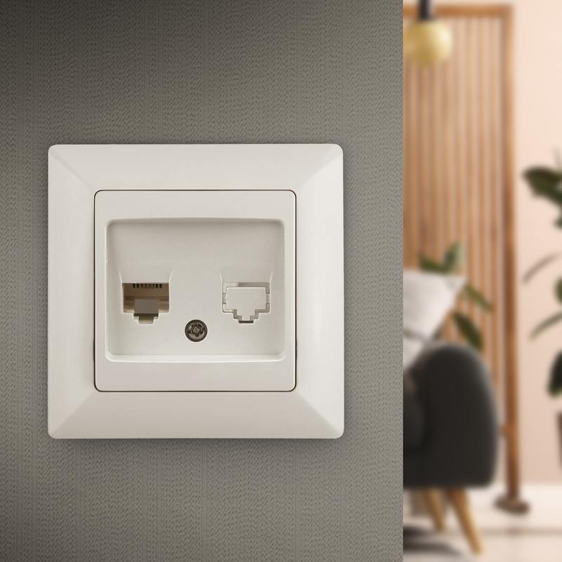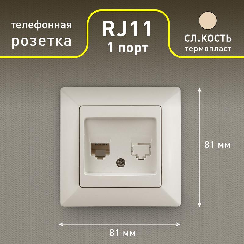 Розетка телефонная RJ11, серии Solo, скрытой установки 4-302-02 цвет слоновая кость. Выполнена из негорючего термопластика, укомплектована одноместной рамкой.