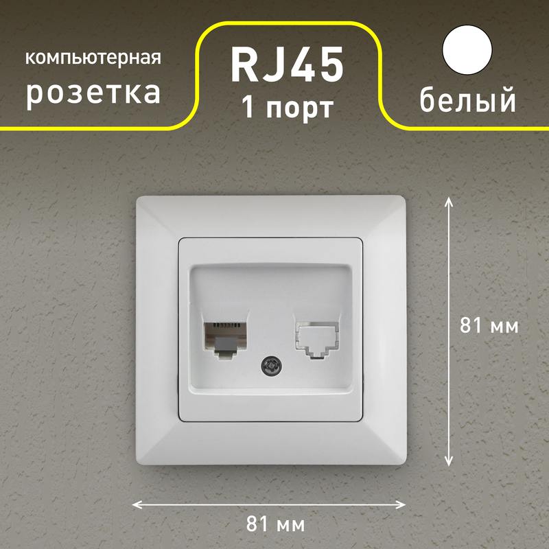 Характеристики Розетка Intro Solo 4-303-01 информационная RJ45, СУ, белый: