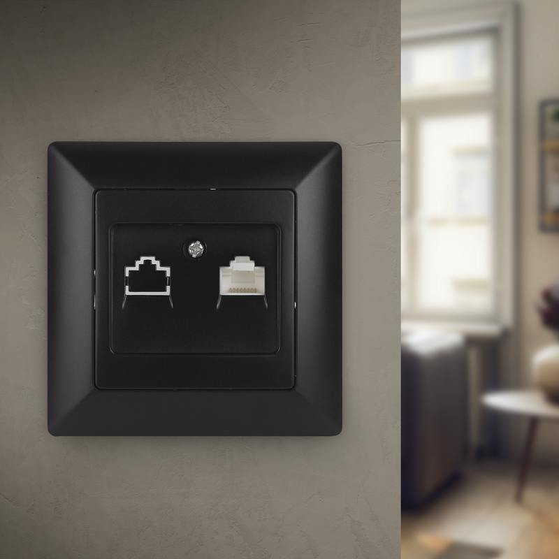 Характеристики Розетка Intro Solo 4-303-05 информационная RJ45, СУ, антрацит: