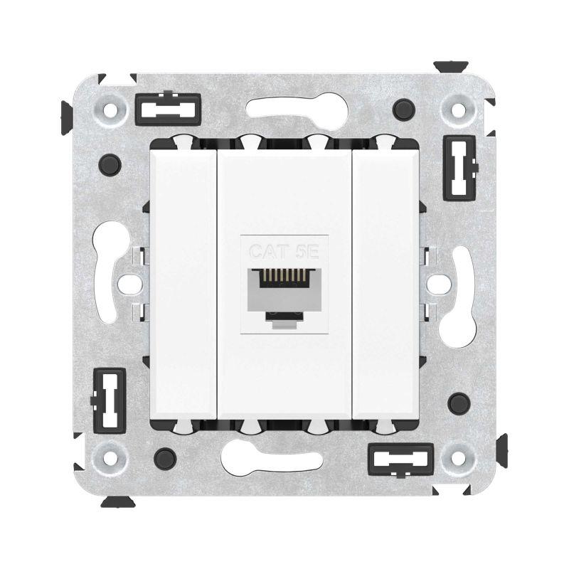Компьютерная розетка без шторки используется для подключения компьютерной техники и соединения с патч-панелью. Компьютерная розетка предназначена для скрытого монтажа в стену, поставляется в комплекте с суппортом. Розетка RJ-45 категории 5e – это наиболее популярная на сегодняшний день модель. Она позволяет организовать сеть с частотой 125 МГц и скоростью до 1000 Мбит/с. Материал – металл, термопласт. Пластиковые детали устройства имеют оттенок «Белое облако» – это чистый белый оттенок, сочетающийся с любыми цветами палитры «Avanti».
