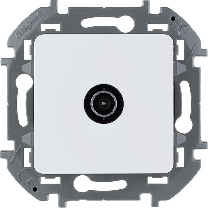 Розетка телевизионная Legrand Inspiria для скрытого монтажа, проходная для схемы «шлейф», 14 дБ 4-862 МГц, цвет «Белый». Используется для подключения одного ТВ приемника к антенне, а также для организации телевизионной сети по схеме «шлейф», когда к каждому телевизору шлейфом прокладывается одна общая линия от источника сигнала. Особенности изделия: — Корпус механизма изготовлен из металлического сплава, обладает степенью экранирования Class A и защищает сигнал от электромагнитных помех. — Присоединение коаксиального кабеля к розетке осуществляется удобным безвинтовым коннектором. — Лицевая панель изготовлена из качественного пластика ABS, устойчивого к загрязнению и воздействию УФ-излучения.