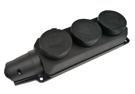 Тройная каучуковая розетка с заземлением и заглушками 9323 ТМ IN HOME предназначена для подсоединения сразу трёх электрических приборов в электрическую сеть напряжением 230В, номинальным током 16А. Каучуковый корпус устойчив к износу, механическому повреждению, химическому воздействию, обладает высокой эластичностью, водонепроницаемостью и отличными электроизоляционными свойствами. Изделие отличается степенью защиты от влаги и пыли IP44, а также широким диапазоном рабочих температур. Цвет корпуса – чёрный. Гарантия 2 года