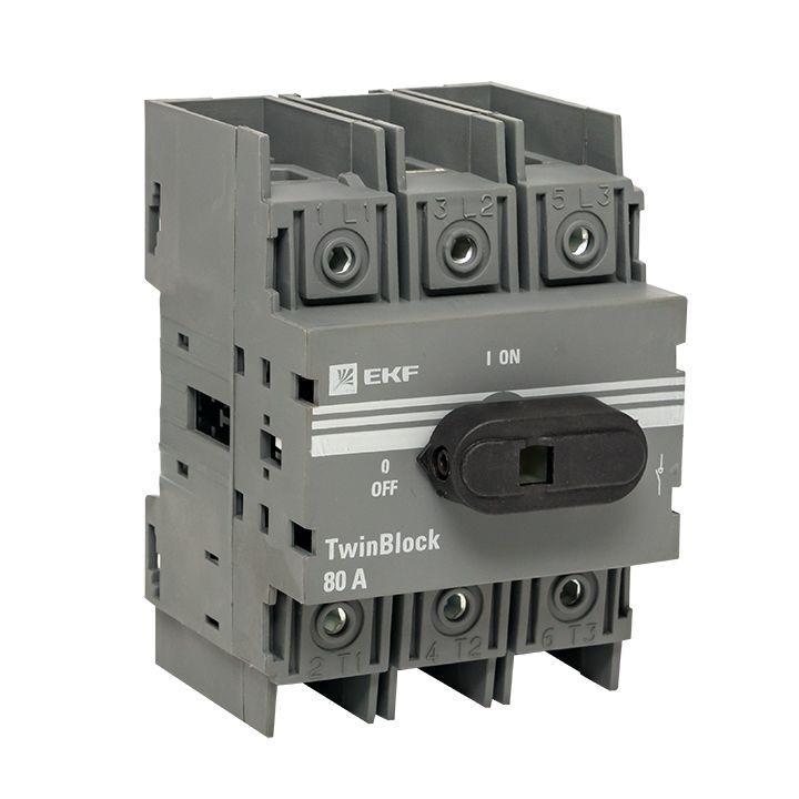 Характеристики Рубильник 3п 80А с рукояткой управления для прямой установки TwinBlock PROxima EKF tb-80-3p-f: