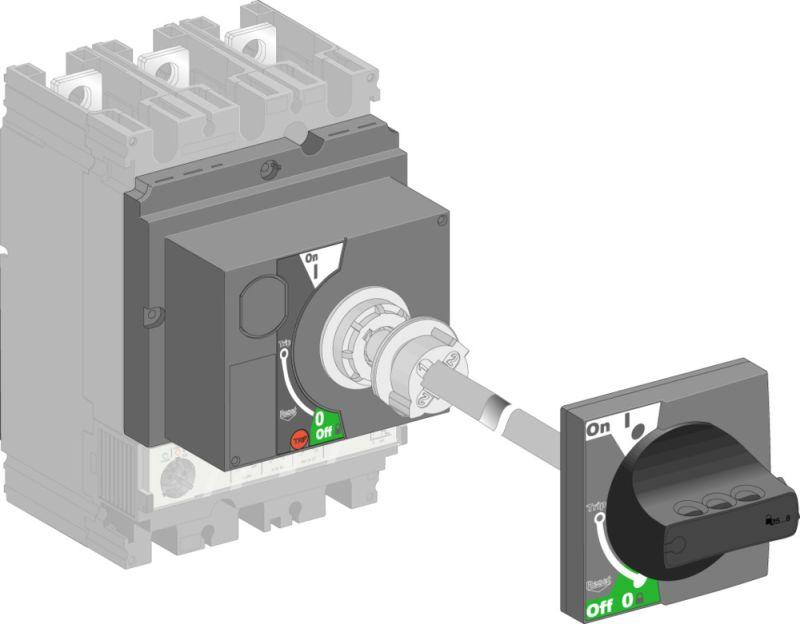 Выносная поворотная рукоятка позволяет управлять автоматом SystemePact CCB, установленным внутри шкафа не открывая двери. Устанавливается на дверцу шкафа. Применяется в случаях, когда нужно ограничить доступ к автомату или оборудованию шкафа, но оставить возможность управления автоматом. Кроме того, рукоять не дает открыть дверь при включенном автомате