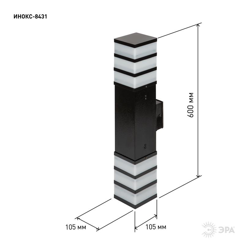 Характеристики Садово-парковый светильник ЭРА ИНОКС-8431 настенный черный IP54 2хЕ27 2*max60Вт: