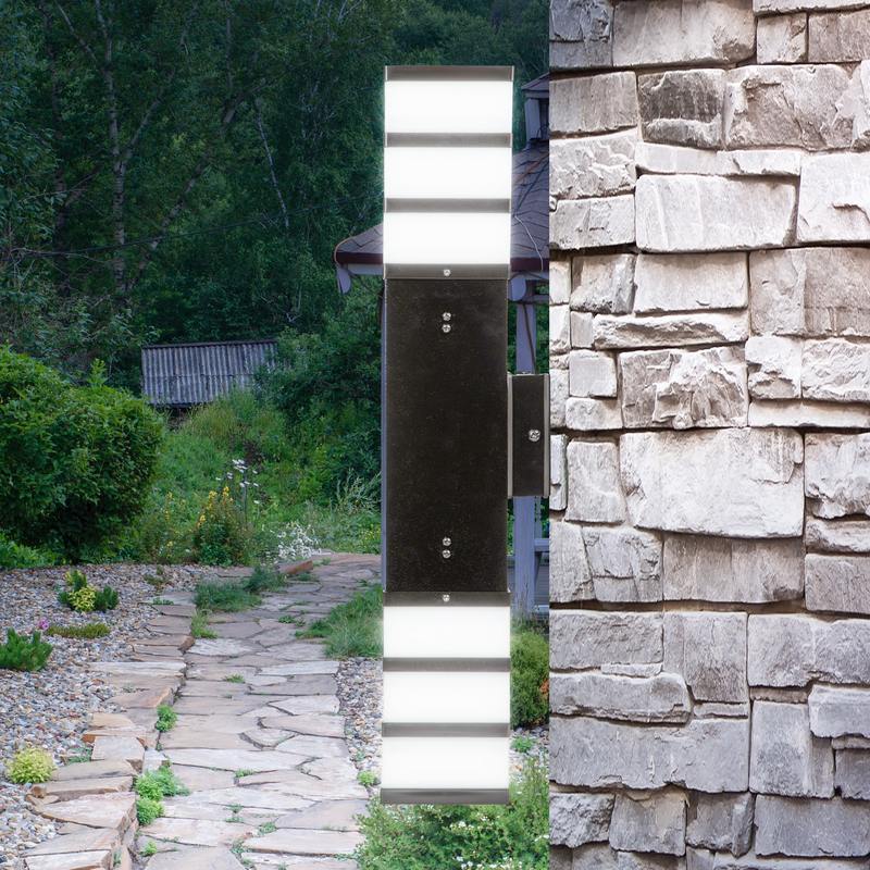 Фасадный садово-парковый светильник ЭРА "Инокс" — настенно-вертикальный, под 2 лампы. Произведён в Республике Беларусь. В серию ЭРА ИНОКС вошли напольные и фасадные светильники под лампы ЛОН, КЛЛ или LED с цоколем Е27.