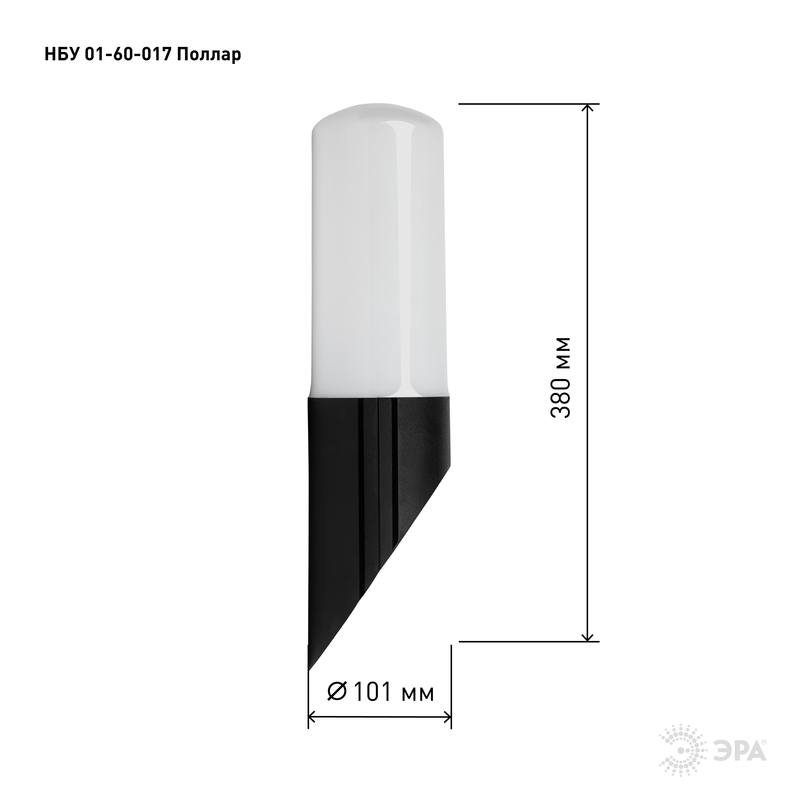 Характеристики Садово-парковый светильник ЭРА НБУ 01-60-017 Поллар настенный черный IP54 Е27 max60Вт h380мм: