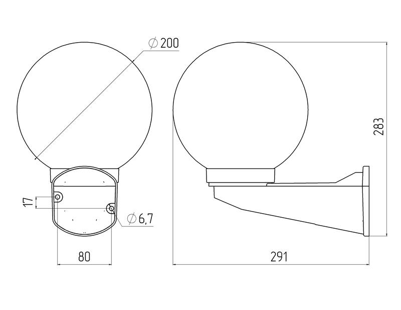 Характеристики Садово-парковый светильник ЭРА НБУ 01-60-201 шар опаловый настенный IP44 Е27 max60Вт d200mm: