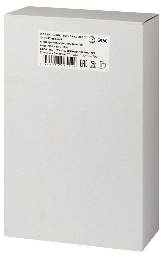 Характеристики Садово-парковый светильник ЭРА НБУ 06-60-003 Ника 60Вт черный прозрачный: