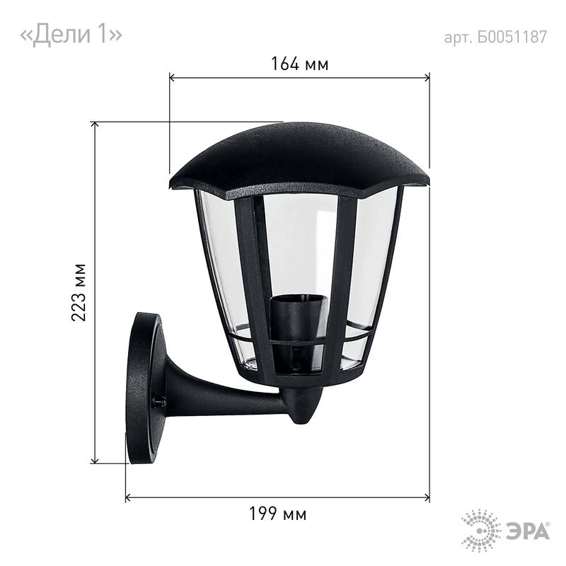 Характеристики Садово-парковый светильник ЭРА НБУ 07-40-003 Дели 1 черный 6 гранный настенный IP44 Е27 max40Вт: