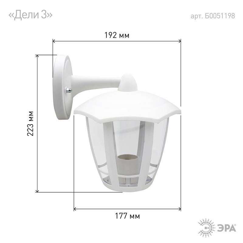 Характеристики Садово-парковый светильник ЭРА НБУ 07-40-004 Дели 3 белый 6 гранный настенный IP44 Е27 max40Вт: