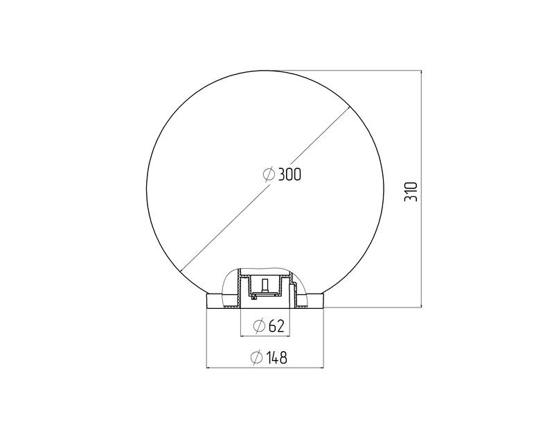 | Преимущества | Дизайн с учетом европейских тенденций в освещении. Не подвержен коррозии, деформации под воздействием погодных условий (основание выполнено из поликарбоната, рассеиватель- полиметилметакрилата). Подходит любая светодиодная лампа, имеющая габариты не более D118мм, H=«D шара»-30мм |