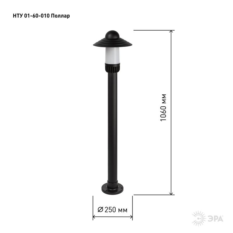 Характеристики Садово-парковый светильник ЭРА НТУ 01-60-010 Поллар напольный черный IP54 Е27 max60Вт h1060мм: