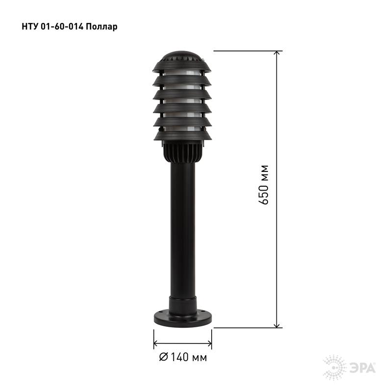 Характеристики Садово-парковый светильник ЭРА НТУ 01-60-014 Поллар напольный черный IP54 Е27 max60Вт h650мм: