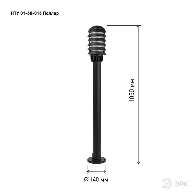 Характеристики Садово-парковый светильник ЭРА НТУ 01-60-016 Поллар напольный черный IP54 Е27 max60Вт h1050мм: